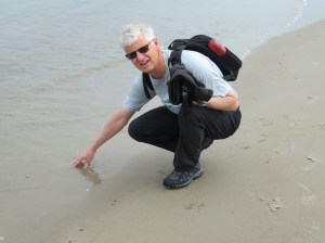 We loved all these sun chairs that they have on the beach. There were hundreds of them all along the beach and they made it very colourful. Interestingly there were no waves on the shore. The sand was very fine and on a warm day it would be a pleasant beach to come and visit. As this is now truly the Baltic Sea and the first time we have every visited it we went down to the water to dip our toes in it.