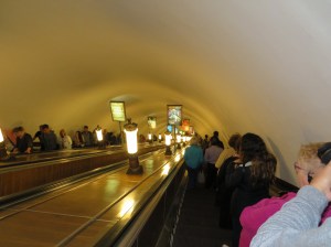 It was a deep station though not one of the deepest on the system. It blew us away that the escalators were wooden and also they moved extremely quickly so you needed to watch yourself carefully. Exactly like London, they used them during WWII as bomb shelters.