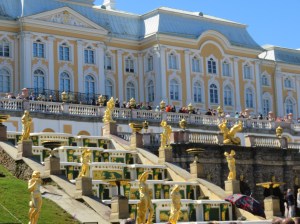 So, we were lucky we had such fine weather for our visit to the Peterhof museum and gardens. We remember well that when we last saw them they were totally kaput!!! A lot of money and time has gone into repairing them. Of course with the fine weather and with it being a Saturday the crowds were aplenty.