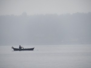 The day is soggy, wet and foggy as you can see by this chap who was rowing across the Oslo harbour.