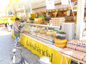 We then went to the flower stall. We are just so damn jealous at the price of flowers. This is what we got for €5. If you look closely you can actually see there are three bunches of white flowers also. How very Dutch to bike down to the local market, purchase your cheese and flowers and then bike home – something we couldn’t do in Canada.
