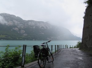 This particular little town called Quinten across the other side of Lake Wallensee, which is the lake Fraser biked along in the afternoon, is only accessible by ferry and has no motorized transport there. On a finer day we may well have taken the opportunity to pop over there.