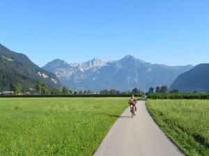 Our plan today is to bike up the Zillertal valley to a place called Zell im Ziller which was 23k away. The weather forecast was for rain at 12midday and a reasonable amount at that, so we opted for an early start. Our earliest start yet at 7.30am.