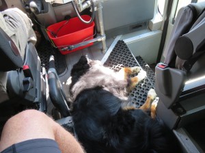 So the 11.00am bus arrived and yet again there was no room for us to get on. We rode down to the information centre and they helped us to organise a taxi over the pass. It was pretty expensive but once we saw the distance we were taken it more than made up for it. The taxi climbed up the pass and we got spectacular views back towards the Zillertal valley. The driver did not speak any English which was fine but between us we sorted out where we wanted to be dropped off. He had a lovely dog called Buster who went everywhere with him on his runs.