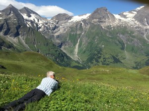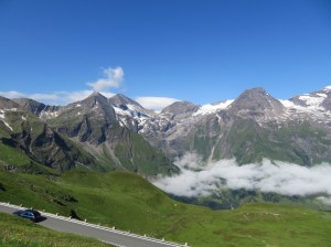 Once at the top we got a great look at the glacier but the peak of the Grossglockner was covered in cloud. Then the clouds opened up and it poured for about half an hour. We thought our viewing was over put as quick as the rain had come, it stopped again and the clouds blew away to reveal the peak in glorious sunshine. Quite spectacular