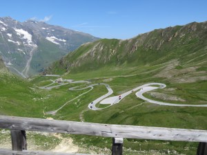 Woke in the morning to a pretty gloomy day but headed out at 9.00 anyhow. After a short while and as we started climbing on the bus we broke through the valley clouds to glorious sunshine. The road up is known as one of the most scenic roads in Austria. It is only about 50km long but winds through about 30 hairpin bends.