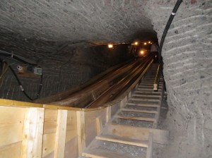 At the end of the ride we were 200m underground and had further to go down. They invented this rather unique way of getting there quickly by using wooden slides of which we had the opportunity to try. A quick demo by our guide and then we were off.