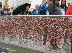 We are just turning into a couple of old cynics but apparently by securing a lock with your name and date engraved on it and then turfing the key into the river below you will remain true loves for the rest of your lives. Now, this is where we start to quote current divorce rates!!! We were more concerned about the integrity of the bridge, as these locks really add up to a lot of extra weight. A particular bridge over the river Seine in Paris had to have all the locks removed due to the added weight causing structural issues. See, we said we were just a couple of old cynics.