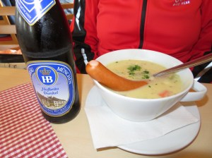 So we went full blown Bavarian food – potato stew with sausage- hmmm, yum?!?