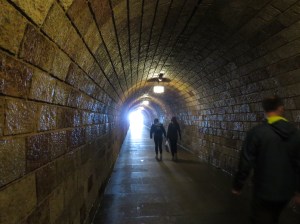 The elevator was made of brass. It was too difficult to get a photo as the elevator was crammed with about forty people so you couldn’t really see the décor. Instead, we got a photo of the tunnel leading up to the elevator.