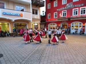 Just finishing off from last night as we were treated to a bit of a local Austrian dancing from a group of adults and children who performed in the town square directly next to our hotel. The fellows dress of lederhausn was great and they did the knee, bum and feet slapping routine very skillfully. It was most entertaining.
