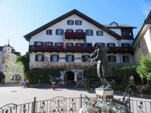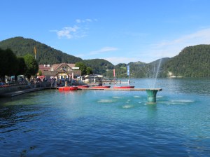 The colour of the water is green and crystal clear and extremely inviting especially as the temperature got to about 26c. After we arrived in St Gilgen and settled into our rather nice hotel we went down for a swim. Fras said this lake was warmer than Lake Hallstatt where he went swimming yesterday. We both enjoyed the refreshing swim though for Di it last east less than a minute as it was a bit too much on the cool side for her.