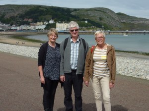 We walked to the end of the pier and had a beer and then drove up to the Great Orme . This is the nob or hill at the north end of the esplanade where we got a spectacular view of the Irish Sea. Three miles off the coast was a substantial wind farm which was working extremely hard as the wind was so strong we had to lean into it. We were most fortunate as the weather was holding off for us.