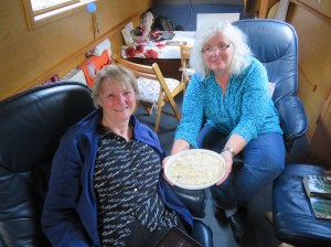 We found it a little difficult to find a decent mooring tonight but after a further hour cruising we hit pay dirt. Di and Marlene took the opportunity to make an apple and blackberry crumble for dessert tonight. The blackberrys are courtesy of the wild bushes that are growing along the edge of the canal in prolific numbers at this time of the year. We are not going to vouch for the taste but we gave it a go!