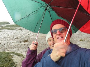 Oh my giddy aunt, it is wet, wet, wet and here we are heading off to walk on the ocean floor this morning – this could classify us under the category of senile!!! The sky is low, the clouds are rolling in and the rain is coming sideways at us but yet we still blundered on.