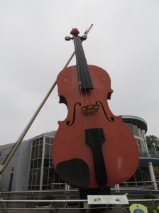 We had a short drive around Sydney township itself which didn’t take us too long as it is very small. It is the second largest city in Nova Scotia with a population of 31,000 which really only just classifies it as a city. It was pouring with rain but Fras braved the element to take a photo of the fiddle. We will go into a little more detail about the fiddle and its significance.