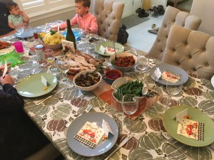 We had Allan’s sister Kathryn and her husband Mark along with their three children to join us. There were four children under the age of seven, plus four adults and a dog so it was pretty much bedlam getting the hot food on the table but orchestrated well by Paige and Allan.
