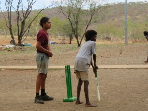 They are great little cricket players but their passion is Australian Rules Football. One of their community boys plays for the Carlton Footy Club based in Melbourne and only last weekend he dropped in to say hi to his family and muck around with the kids. Girls and boys both play AFL and aboriginals in particular have a great gift for the game.