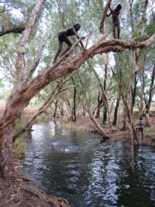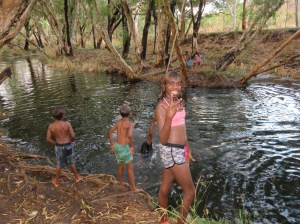 They then go on to tell us that down at the local swimming hole in the creek are two small crocodiles. Apparently they got flushed down this way last year during the rains and have spent this winter growing. “But they not big missus, and they only fresh water, so we still swim there”.
