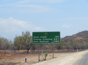 The sign below isn’t about showing the distances so much but the Port Hedland destination.