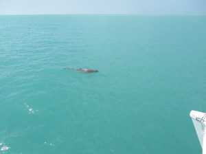 Up and out the door by 7.50am for another excursion. This time we boarded a catamaran and headed out into Roebuck Bay which is an area we use to fish in years ago. We went looking for the snubfin dolphin which is a close relative to the Orca. Snubfins – named for their miniature dorsal fins – were only discovered in 2005 and are one of just three dolphin species found only in Australia.