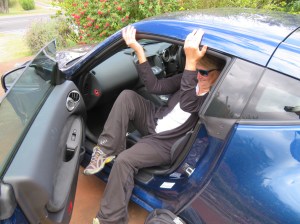 We stopped off at the Wellington Reservoir where we checked on some kids earing up for some abseiling but not before we had to extricate Di from the car which was no easy feat.