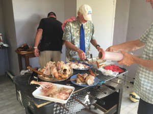 It was the full on gourmet catstrophe of ham and turkey done on the barbie. There were 14 adults and 4 kids so a great feat to get it all on the table at once and hot to boot.