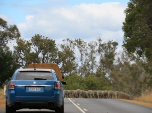 We were wondering when we might come across a flock of sheep on the road to navigate through or around. This is certainly the norm in rural Australia and New Zealand.