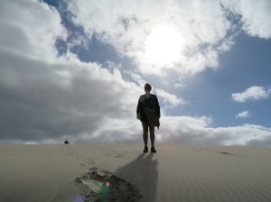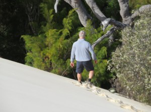 Fraser chasing his hat down the dunes into the forest as the wind whipped it off his head. This is the sole reason why the dunes are moving – the winds.