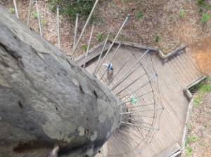 You can’t see it but around the outside of the steps is a cage made of wire so if you do fall you just land on the person below you and take them out plus anyone else underneath you. If they didn’t have the metal net, then just you would end up as a lost soul.