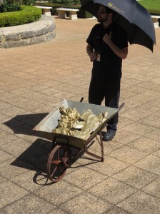 He dragged out this barrow of replica nuggets that showed the various sized nuggets that have been found in this area since the gold rush.