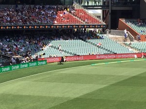 After saying yesterday that we were not going to go to the cricket as it was predicted to be 39c, we ended up there. The only reason it happened was because Leone, Frasers sister in law, rang us from work to say a work colleague had two free tickets to one of the air conditioned corporate stands and wasn’t going to attend the first day. Well, what can you say.