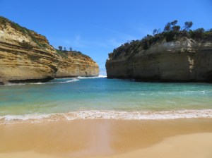 This bay is named after the clipper ship Loch Ard, which ran aground on nearby Muttonbird Island on 1 June 1878 approaching the end of a three-month journey from England to Melbourne. Of the fifty-four passengers and crew, only two survived: Tom Pearce, at 19 years of age, a ship’s apprentice, and Eva Carmichael, an Irishwoman emigrating with her family, at 19 years of age. Pearce was washed ashore, and rescued Carmichael from the water after hearing her cries for help. Pearce then proceeded to climb out of the bay to raise the alarm to local pastoralists. After three months in Australia Carmichael returned to Europe. Four of her family members drowned that night.