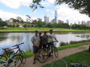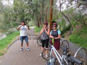 The plan today was to bike from the city, along the Yarra River as far as the Weatherfield Boat House. There were a few errors in our calculations. Di thought the ride was about 8k and mostly in shade. Neither of these thoughts were correct!! It was in fact 14k, no shade and a stinking hot 33c.