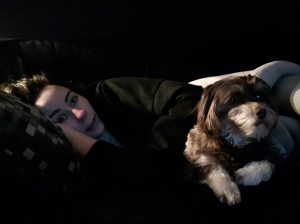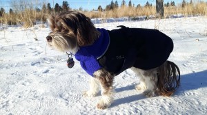 Dressed for her daily walk down the dog park.