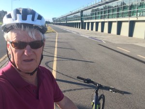 Around Albert Park is also where they have the Formula 1 Grand Prix which I’ll occur on the 17th March this year. Fras found the finish line on his bike!!