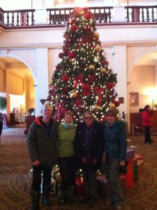 Chateau Lake Louise Christmas Tree with the Four Amigos and Nana B1 with fur baby No.2.