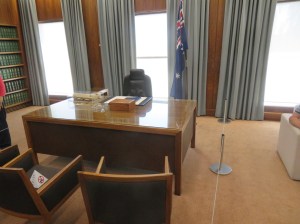 This is the PMs old office which you can see was kitted out in the 1970’s style. The last PM to be in residence here was Bob Hawke. One of his claims to fame, was he was immortalized by the Guinness Book of Records in 1954 for sculling (drinking non-stop) 2.5 pints of beer in 11 seconds whilst he was a Rhodes Scholar at Oxford Uni. He became even more infamous in 1983 for his quote after the historic victory of the yacht Australia II winning the Americas Cup when he said, “Any boss who sacks anyone for not turning up today is a bum”. Fraser remembers as a young boy his dad bringing him into this office and would often come to Paliament House to watch the football as it was on colour TVs.
