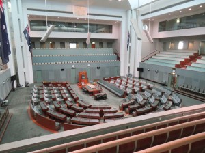 The new house of reps and the senate are in more muted colours and more in line with Australian natural colours. The green as in the eucalyptus trees and the reddy pink as in the red desert and sunsets. The architect took a lot from the Australian landscape and built it into the construction of this great building. It is apparently the largest building in the Southern Hemisphere.