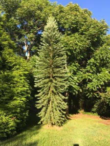 It was a fun morning and Nigel deserved his midday nap and us our little siesta. We loaded up the trailer with all the detritus and Fraser and Jan took off to the dump whilst Di did some washing and helped around. We had a tour of the garden in the afternoon and we especially wanted to go and see the Wollemi Pine that Nigel and Jan had planted about fifteen years ago.