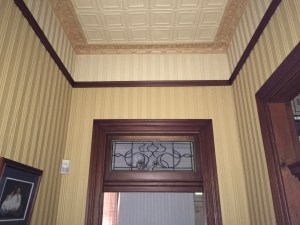 You can see from the photo the magnificent pressed metal ceiling plus the lead light that we did for them. Their house also had some rooms with decorative metal walls whereas ours was all lath and plaster which had a very strong propensity to crack!!!