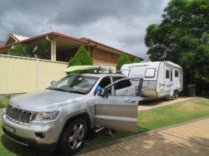 Caravan sorted, cars sorted, house sorted and Abby the 20 year old cat sorted, so it was on the road. We only had an hours drive to Hawks Nest which is just up the coast. At this stage the rain had stayed away so we were feeling very confident.