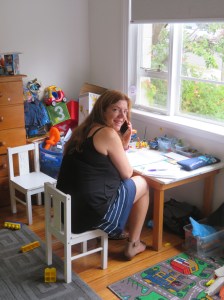 Belinda had today off but even so she still had to work from home. Reckon we should spring her for a new desk.