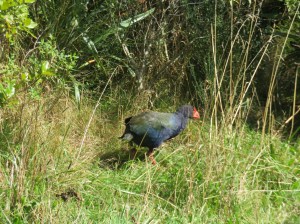 This guy is a Takahe and only 250 exist at present. Hard to see in the photo but he is about the size of a 10lb turkey. Prior to the Maori and the white fella arriving, there were no predators for the plethora of flightless New Zealand birds. The Maori arrived and killed off the Moa and brought the rats and then the white fella brought the gun and the possum. There is a saying in New Zealand that goes “A good possum is a dead possum”. This upsets the Aussies as they think they are really cute.