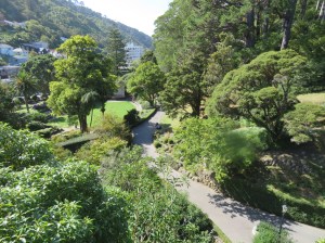 After our visit to the eco-sanctuary, we caught the bus back to the top of the cable car and walked back into town through the Botannic gardens. The roses were still out in full bloom and even though Kiwis say they are in a drought, it looked pretty green to us.