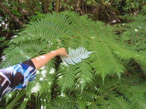 We wanted to demonstrate the fern that New Zealand is iconically known for besides its Kiwi – yet another flightless bird. The bush in New Zealand is very Jurassic like and has ferns everywhere but the flora emblem of New Zealand is not just any fern – it is the Silver Fern. This is not as prevalent as all the other species of ferns but is easily distinguishable by its underbelly. Here you see the underside of the fern turned up to show the silver colour underneath.