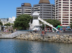 The walk was very easy as there was so much to look at along the way. The inter island ferry was coming in from Picton which is in the north of the South Island. People were swimming in the harbour and many people just strolling along.