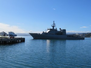 HMNZS Wellington was just pulling into port as we walked along. It is a patrol ship. As well as military tasks the ships of the Patrol Force undertake civilian-support tasks including border and fisheries patrols, search and rescue, and provide support for the Police, Civil Defence and the Department of Conservation.