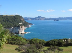 Once we had had our breakfast of porridge we organised ourselves to drive about 10k up the road to the town of Ha Hei where we boarded a small bus that took us up to the start of the track that takes you down to the beach where Cathedral Cave is. Our view walking down was spectacular, as you can see.