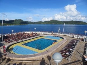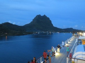 We did go on the very top deck to watch as we sailed away from Bora Bora at 6.00pm – it was very magical. The remainder of our evening was quiet with dinner on our own rather than sharing with other people that we have always done for the other nights. Finished up at one of the shows and then pretty early into the sack as have another big day tomorrow.